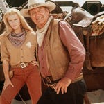 With her outlaw husband dead, feisty Mrs Lowe wants to return the gold he stole to its rightful owner. She hires cowboy Lane and his buddies to help her find the stash, but there are others on the treasure trail.
