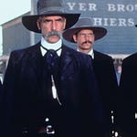 Renowned marshal Wyatt Earp becomes a professional gambler in the town of Tombstone, but is forced out of his retirement to take on a gang of hellraising villains no one else is prepared to stand up to. Joining forces with his brothers and drunken gunslinger Doc Holliday, he gets ready to face them in a showdown at the OK Corral. Western, starring Kurt Russell, Val Kilmer, Bill Paxton, Sam Elliott, Michael Biehn and Charlton Heston.