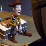 While Andy is at Cowboy Camp, a greedy toy collector steals Woody, a highly collectible toy, from Andy's mothers garage sale, and prepares to put him behind glass for good. While the toy gang risks becoming road kill in a daring rescue, Woody discovers he's the "piece de resistance" in the collector's "Woody's Roundup" set.